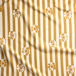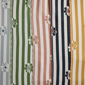 Stylized for sun, bridging the cultural eras of mod fashion and the flower power movement, Lucile Stripe brings the newest smile to our JOY collection.
